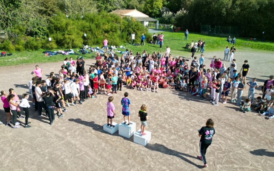 Trois écoles venues de St Michel, La Tranche/Mer et L’Aiguillon la Presqu’île ont répondu à l’invitation. C’est ainsi que plus de 350 élèves ont profité de ce parcours. En arborant une broche rose ainsi qu’un vêtement de cette même couleur, les élèves ont montré leur solidarité en ce mois d’Octobre Rose.