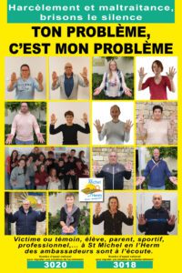 Dispositif pHARe prévention harcèlement par Mairie | dimanche, 25 janvier, 2026 | Vie communeHarcèlement et maltraitance – Dans le cadre de la prévention et de la lutte contre le harcèlement, que vous soyez victime ou témoin, élève, parent, sportif, professionnel,… à St Michel en l’Herm des ambassadeurs sont à l’écoute et se mobilise.