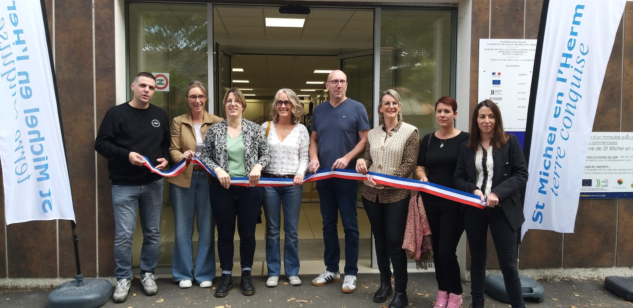 Inauguration des 6 cellules commerciales le samedi 27 septembre : Carrefour Express, La Mie Vendéenne (Boulangerie pâtisserie), la galerie des créateurs avec La Isla Bonita – Restauratrice de lieux et de vies, à l’Atelier de la couture (Espace couture et vente de vêtements), bijouterie joaillerie, Les fleurs d’Ambrélice (Fleuriste). Bravo à l’équipe municipale pour cette belle réalisation qui apporte un point d’attractivité pour la population michelaise. 5 années de réflexion, de dossiers et de travaux pour un magnifique résultat. Inauguration en présence de monsieur Pecate Sous Préfet de Fontenay, Brigitte Hybert, Pierre Henriet, Loic Peron, Bruno Fabre, Lydie Bernard Smash, Anne Marie Coulon et Arnaud Charpentier, les Maires des communes voisines…