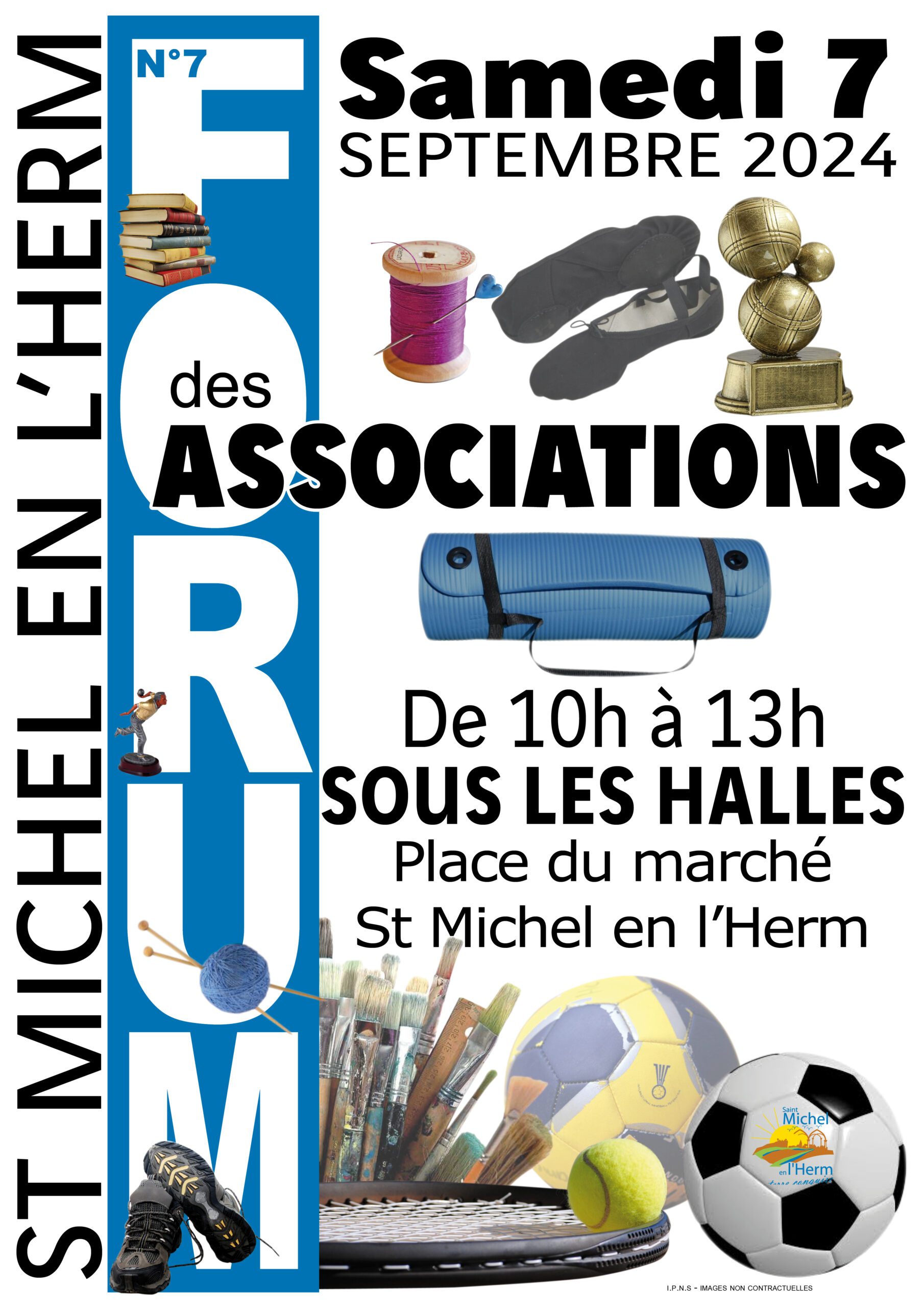 7ème Forum des AssociationsSous les halles du marché+ Ajouter à mon Agenda Google+ iCal / Outlook export Date07 Sep 2024Expiré! Heure 10h00 - 13h00Partagez cet événement