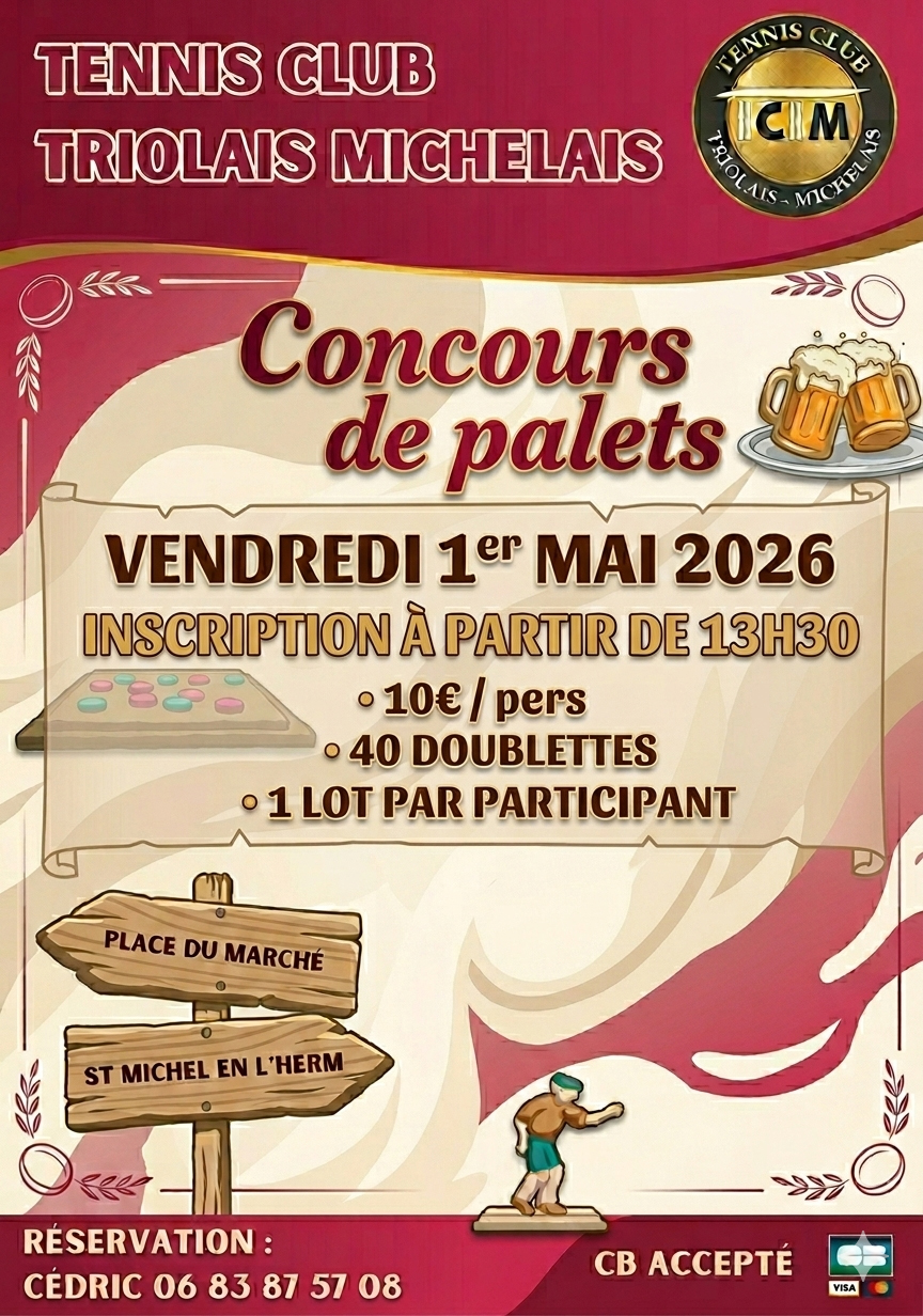 Organisé par le Tennis Club Triolais-Michelais. Place du marché, réservation au 06 83 87 57 08. Tarif : 10€/joueur. 1 lot par participant.