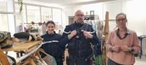 Pour la seconde fois, les gendarmes de la COB de Luçon, commandé par le lieutenant Vincent Labarussias, secondé par le Major Agen, se sont déplacés, le temps d’une journée, dans la commune de St Michel en l’Herm. Un moyen efficace pour favoriser les liens avec la population, la proximité et la sécurité. Accueillis par éric Sautreau, maire de la commune et notre Policier Municipal, nos huit gendarmes, ont simultanément rendu visite l’ensemble des commerçants Michelais, effectué un exposé sur «le Harcèlement» au Collège Les Colliberts, sécurisé les établissements scolaires, notamment lors de la sortie des élèves et mis en place un bureau d’accueil à la mairie. Les passants, quelque peu intrigués, à leur grande satisfaction, ont pu échanger librement avec nos représentants.