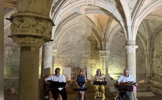 Dominique Sorrente, avec les artistes des Ivres vivants, Audrey Gambassi, Véronique Duprat et éric Papacalodica, a connu un joli succès dans la salle capitulaire, magnifique joyau de l’abbaye, lors du concert poétique, où poèmes et chansons étaient au programme. (Extrait Ouest France)